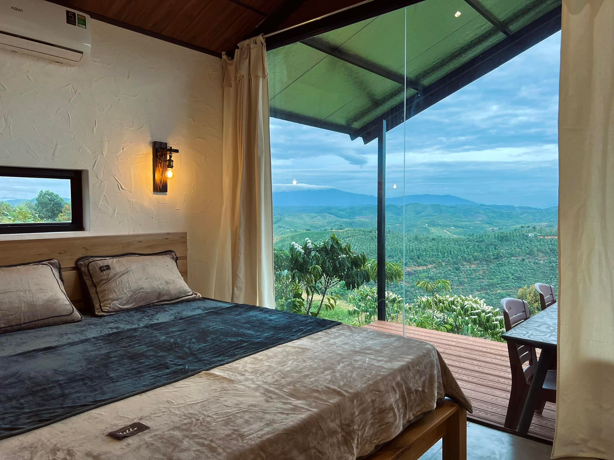 Nơi nghỉ dưỡng bình yên, ngắm thung lũng, đồi núi Tà Đùng và mây trải dài triền đồi mỗi buổi sớm.